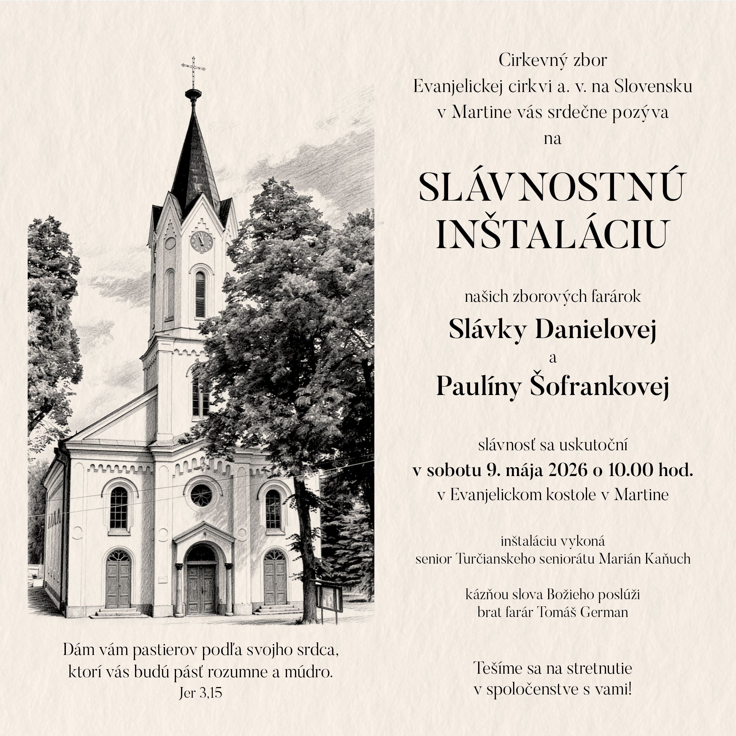 SLÁVNOSTNÁ INŠTALÁCIA (9.5.2026 – 10:00)